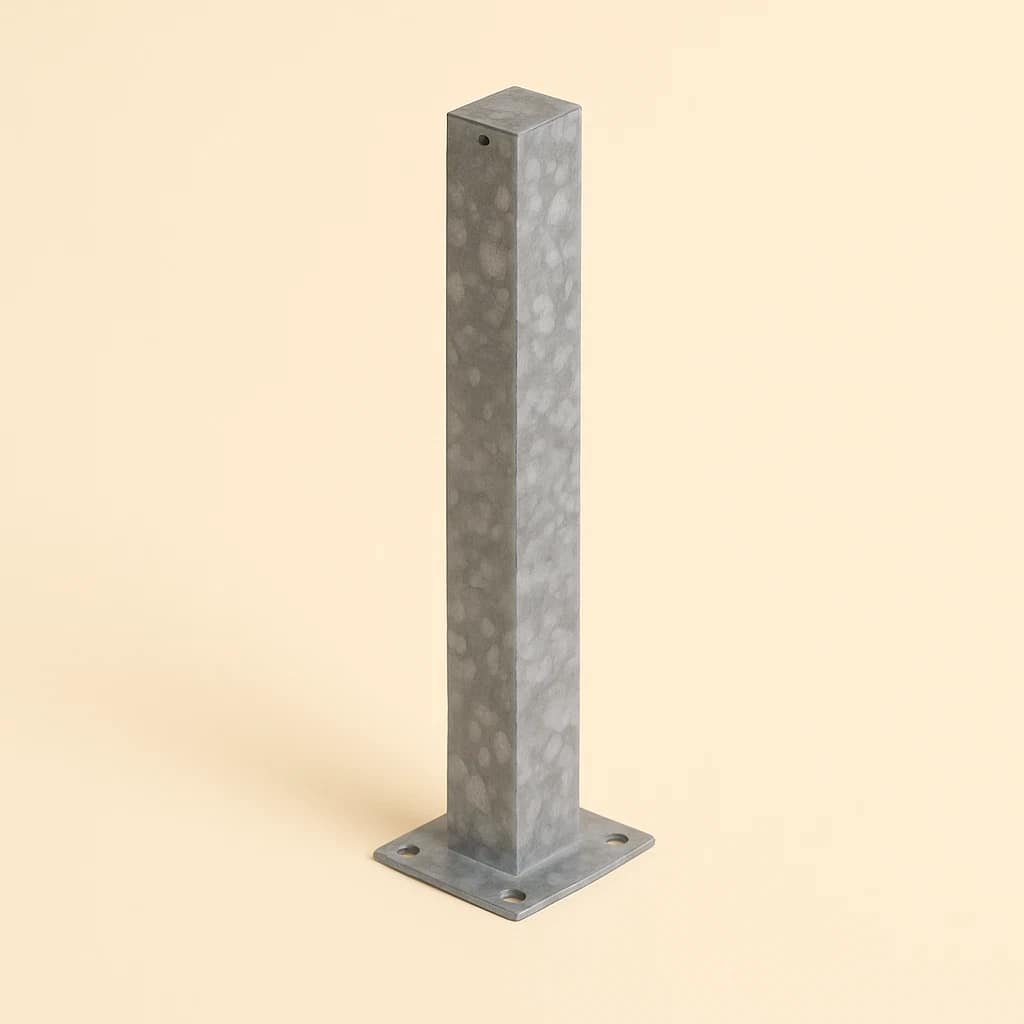 The 1000mm Safety Bollard 120SHS Base Plated Galv is a heavy-duty, galvanised steel post for reliable impact protection. Easy to surface mount in industrial, commercial, and public spaces.
